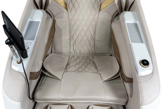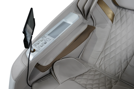 Все функции умного массажного кресла — в ваших руках. Управляйте им с помощью современного 7-дюймового сенсорного дисплея с интуитивным интерфейсом. Для вашего удобства поворотная панель быстрого доступа встроена в подлокотник — вы можете менять настройки буквально одним движением, не прерывая сеанс. Рядом расположен порт для зарядки смартфона, чтобы вы могли наслаждаться процессом без всяких забот.